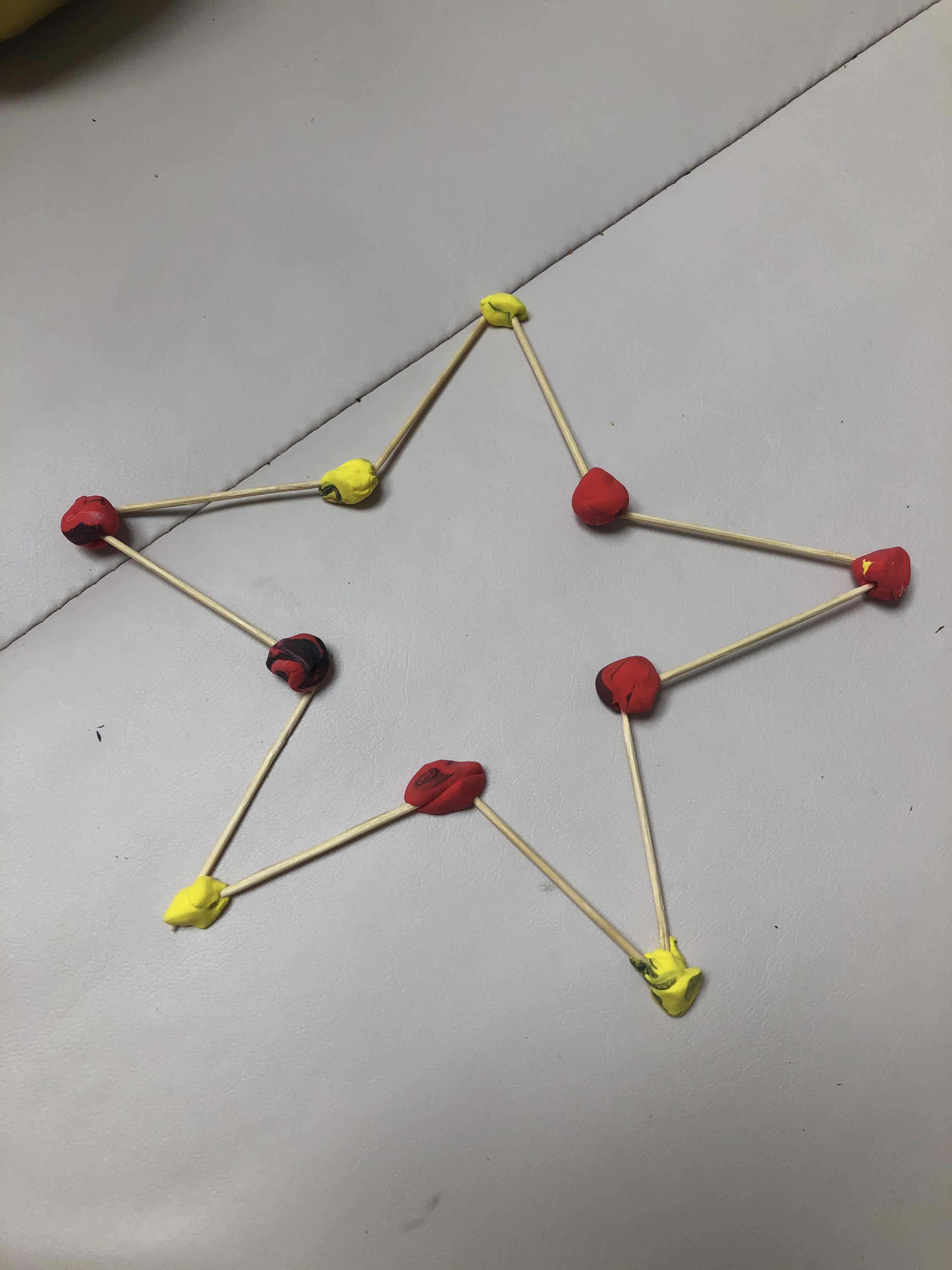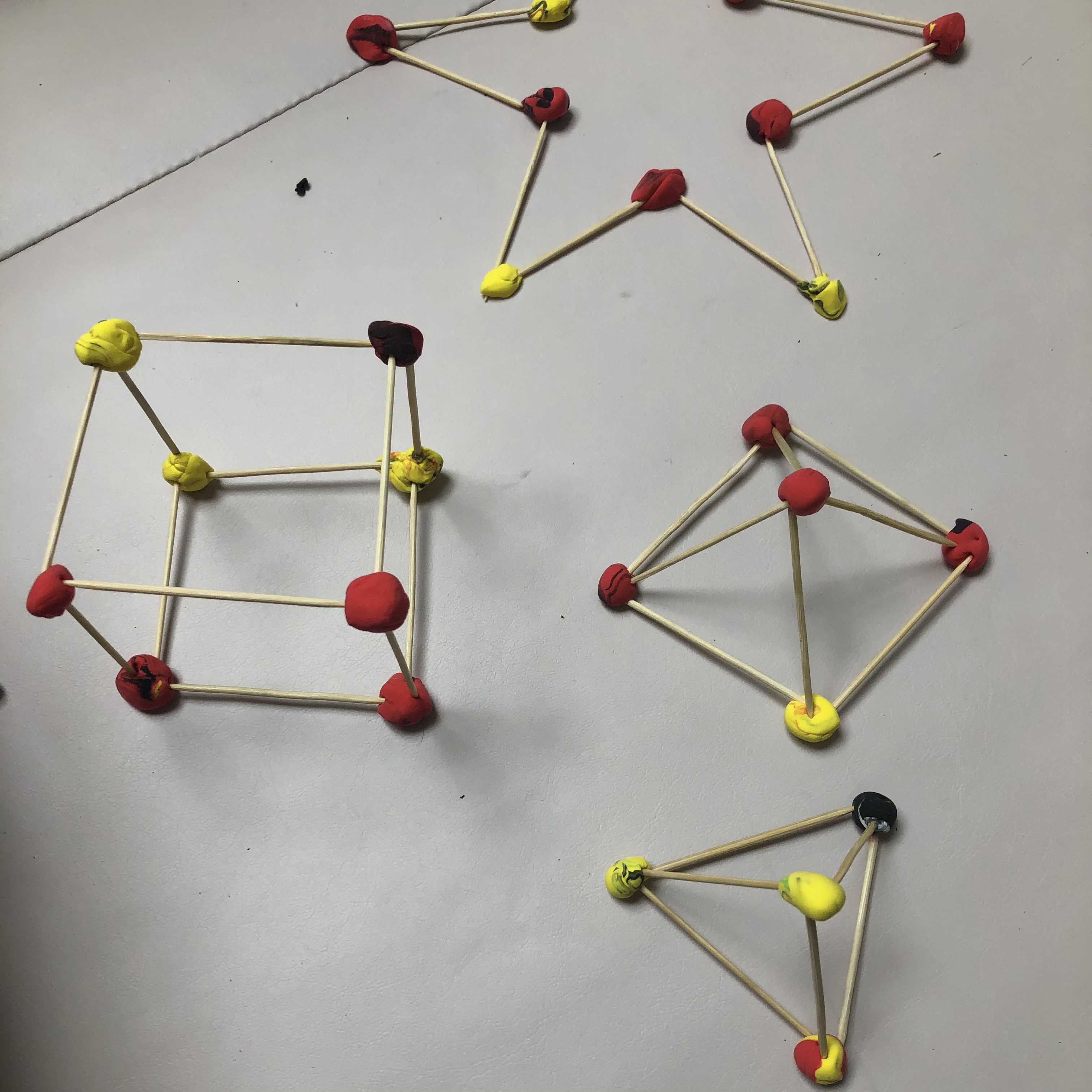 이쑤시개와 클레이로 이렇게 도형을 실제로 직접 만들어 보면 공간 인지를 해볼 수 있다.추상적인 개념에서 시각으로 구체화하기 좋은 것 같다. 아직은 머릿속에서 생각하는 것보다 도형을 생활 속에서 많이 접하고 무슨 모양인지 계속 인지시켜 주는 것이 좋은 것 같다.