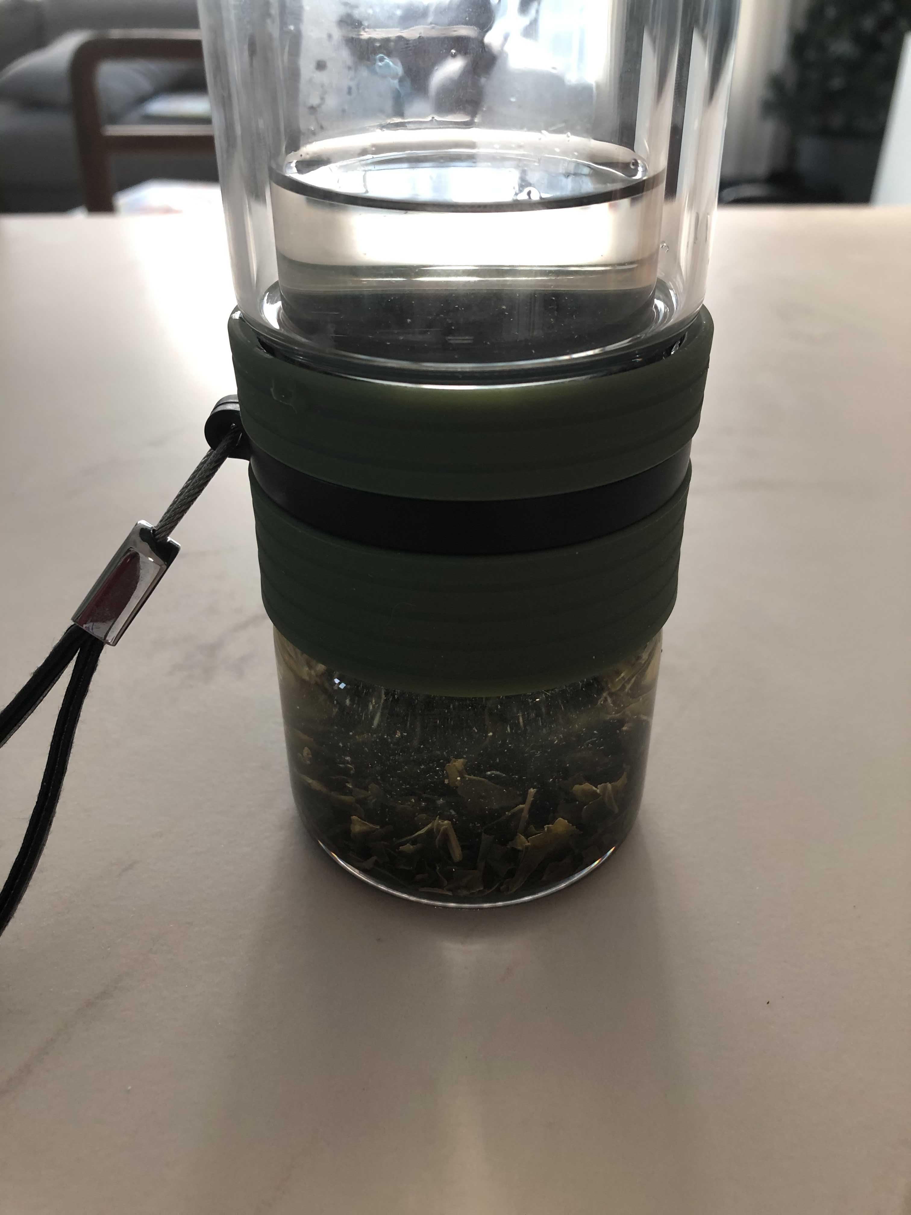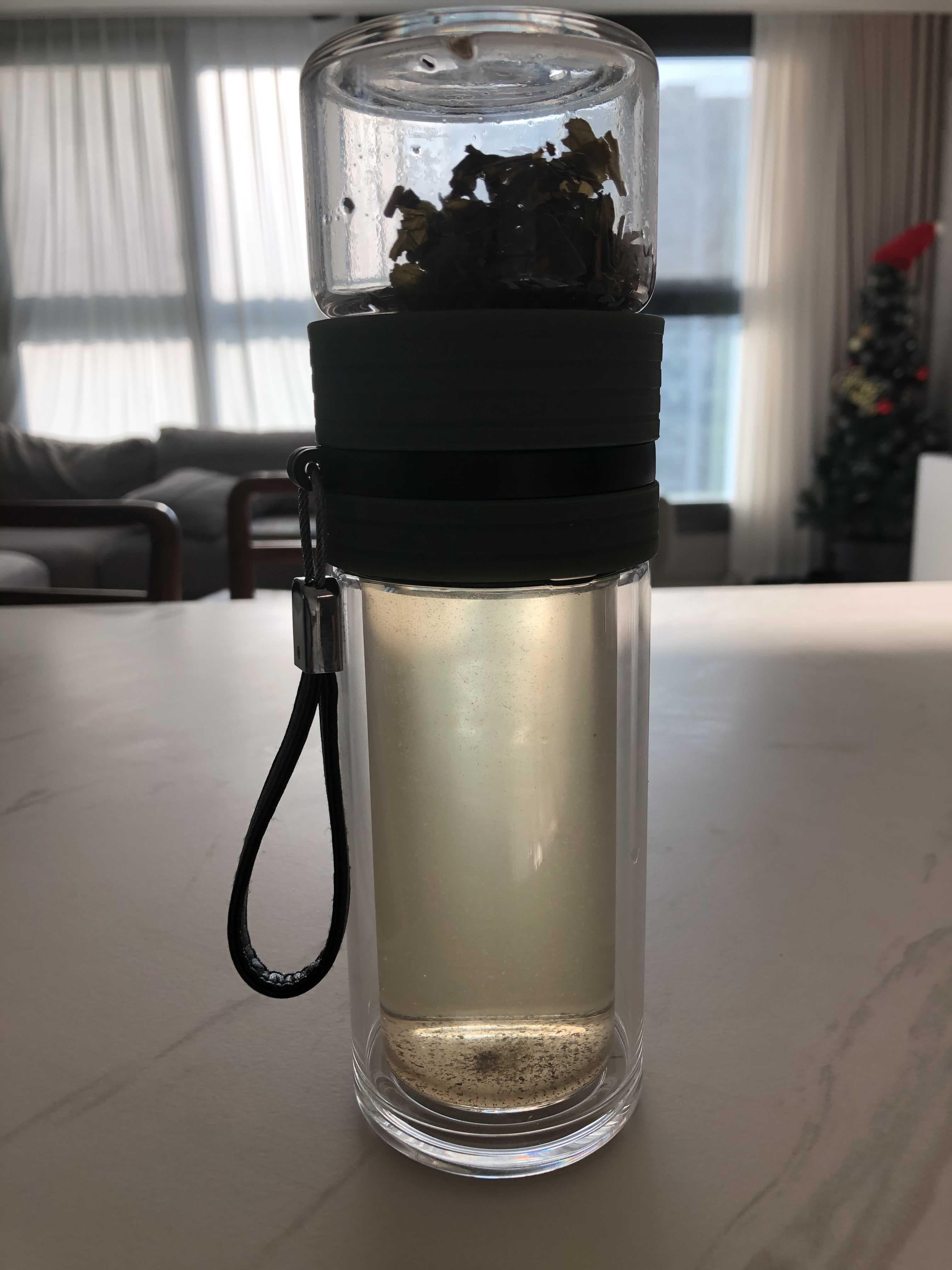 스텐레이스 텀블러는 보온이나 휴대성같은 장점이 있지만 차의 수색을 감상할 수 없어서 아쉬운데 확실히 유리 텀블러는 차 우려 지는 것을 보는 재미는 있다.