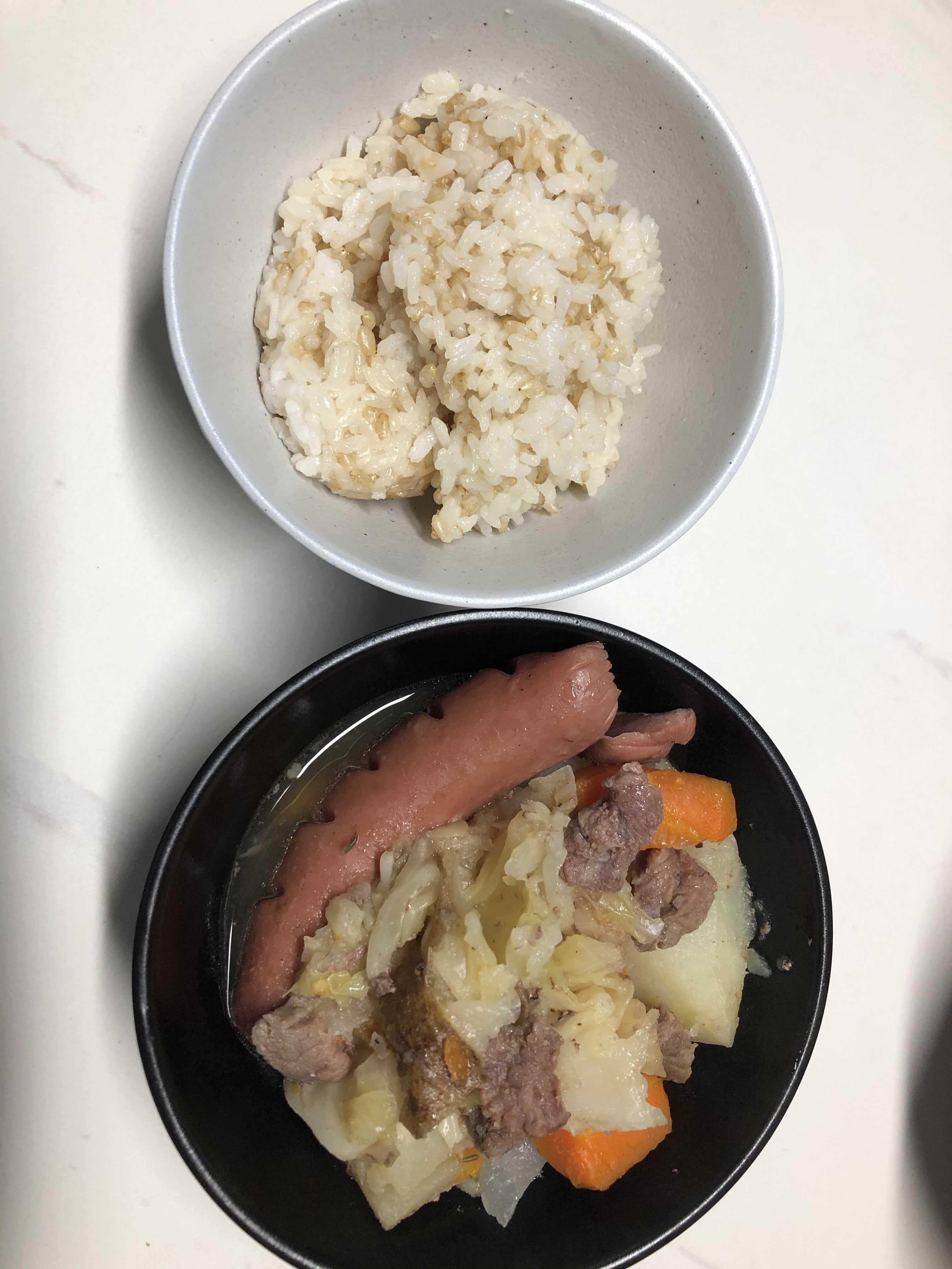 완성되었다. 양념장이 들어간 것을 빼면 재료가 많이 비슷해서 그런지 먹어보면 맵지 않은 부대찌개 같은 느낌도 든다. 그래서 포토푀랑 밥이랑 같이 먹어도 맛있는 걸까.