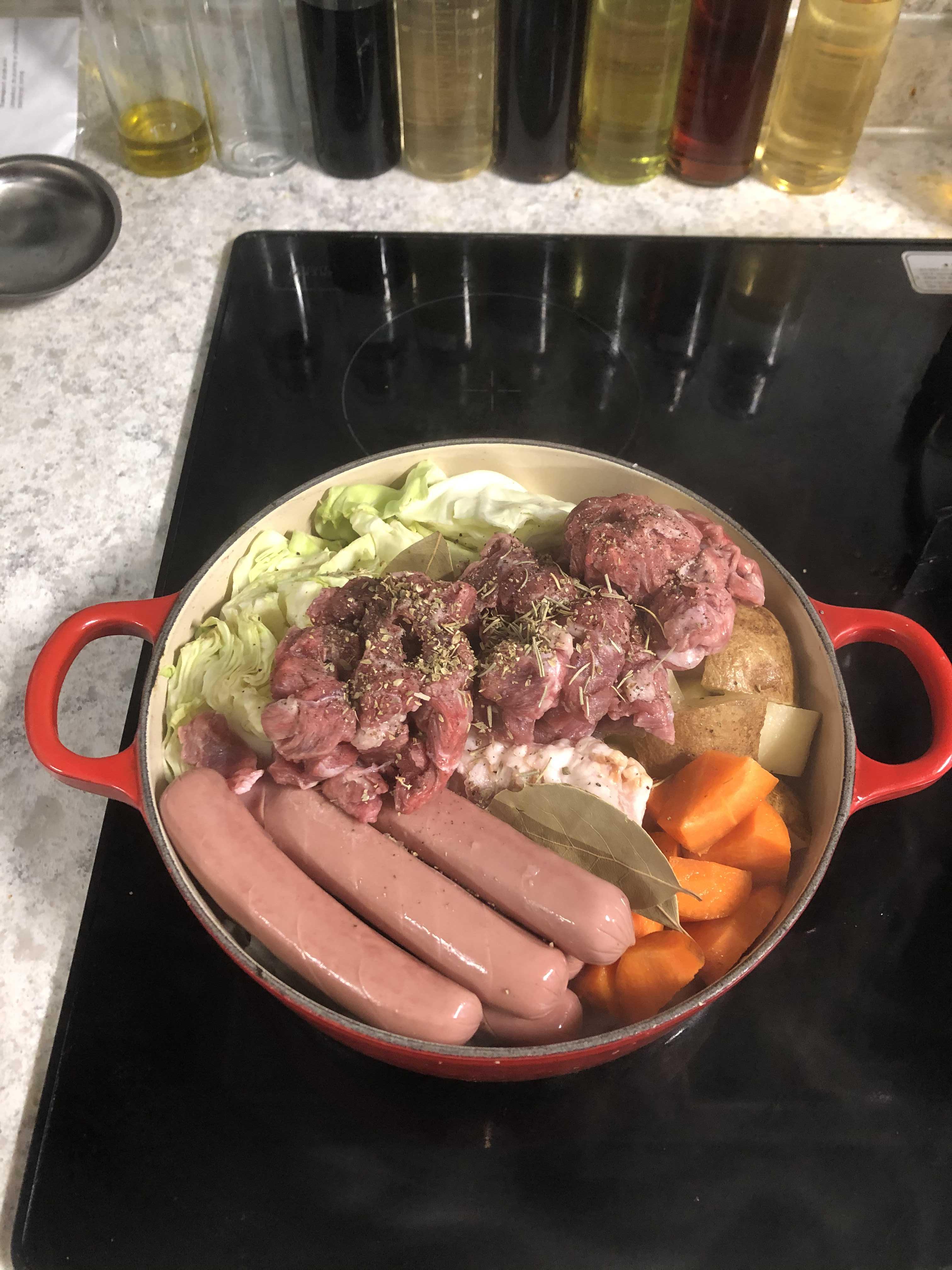 프랑스 가정식이라고 하면 뭔가 어려울 것 같지만 포토푀는 그냥 재료만 썰어 냄비에 넣고 끓이면 되는 아주 간단한 요리다. 사실 내가 주로 해 먹는 방법은 재료부터가 프랑스산이 아니다 보니 정통 프랑스식이라기보다는 일찍 양식을 받아들인 일본에서 해 먹는 방법에 가까운 것 같다. 이건 경양식이라고 보는 게 더 잘 어울린다.