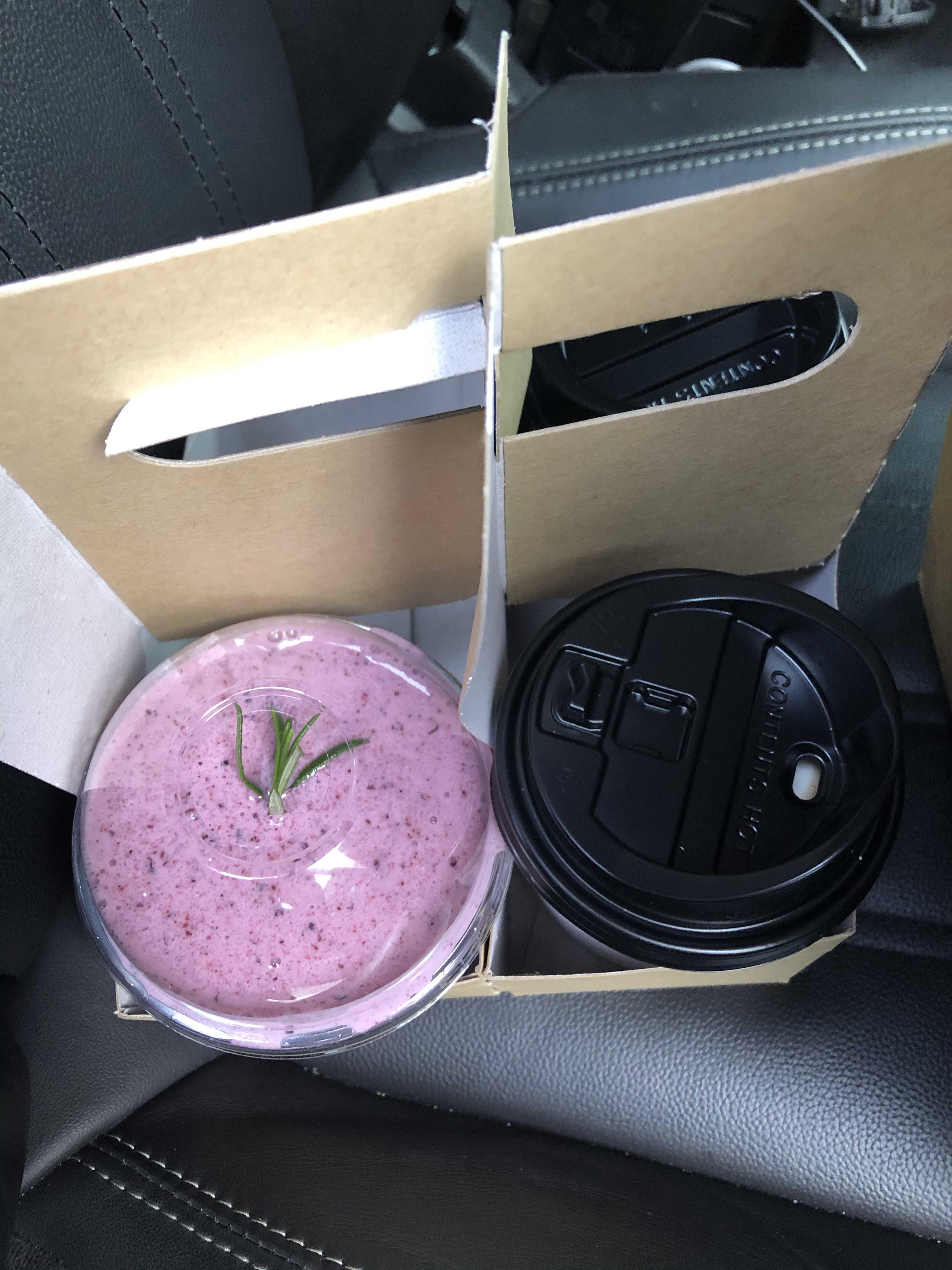 블루베리 스무디와 밀크티를 시켰는데 블루베리 스무디에 로즈마리 잎파리를 올려주는 센스!