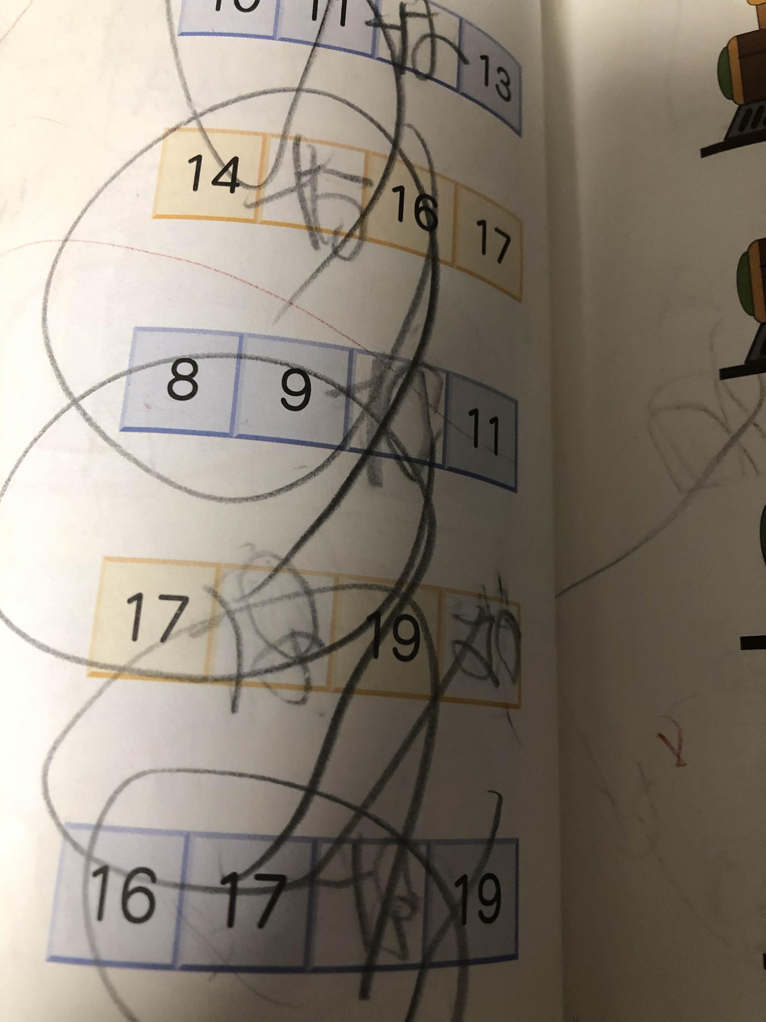 이러한 문제도 단순한 문제지만 사물의 갯수를 한번에 세는 시지각을 훈련하는데 큰 도움이 된 것 같다. (이 시기에는 이에 의외로 어렵다..)