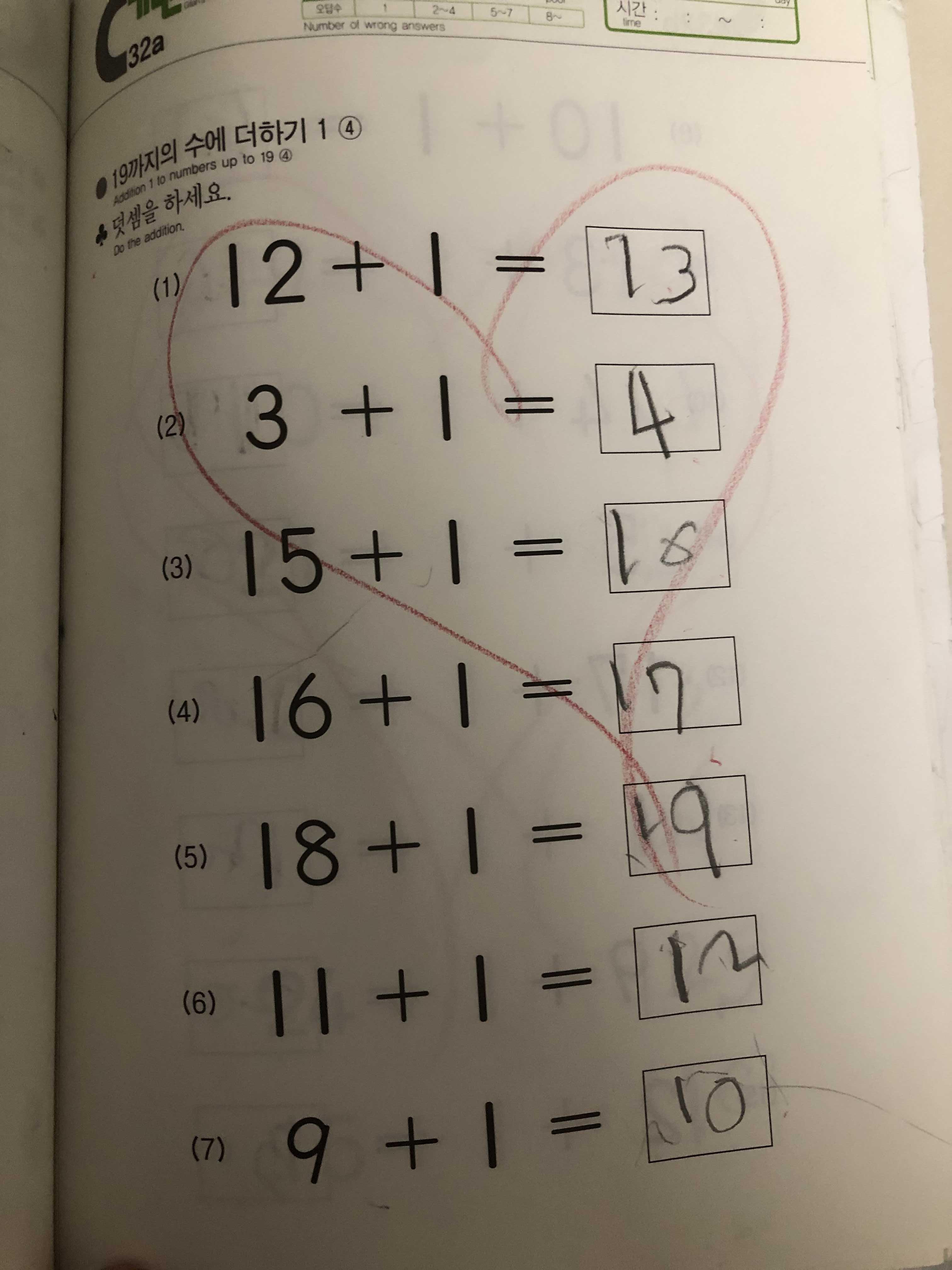 B단계를 다 푸는데 딱 2주 걸렸는데 2주 만에 숫자 글씨체가 가독성이 훨씬 좋아졌고 깔끔해졌다!! (물론 애미의 사랑이 곁들여져 보이는 결과다.)