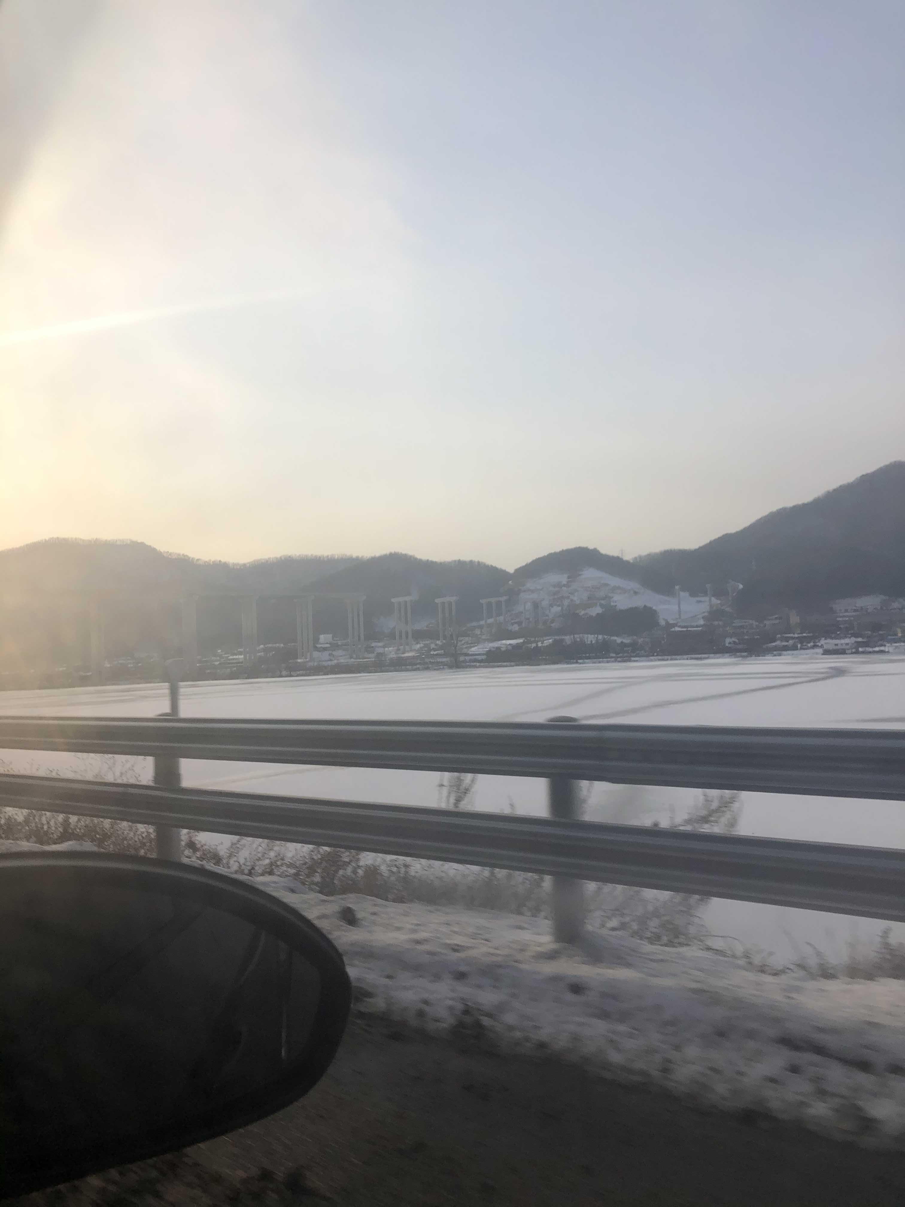 가는 길에 꽁꽁 얼어버린 한강도 구경했다. 요즘 너무 추워서 강이 조금 언 정도가 아니다. 강이 얼어도 살얼음정도로 느껴지는데 이렇게 강이 통째로 꽝꽝 얼어버린걸 보니 신기하다.