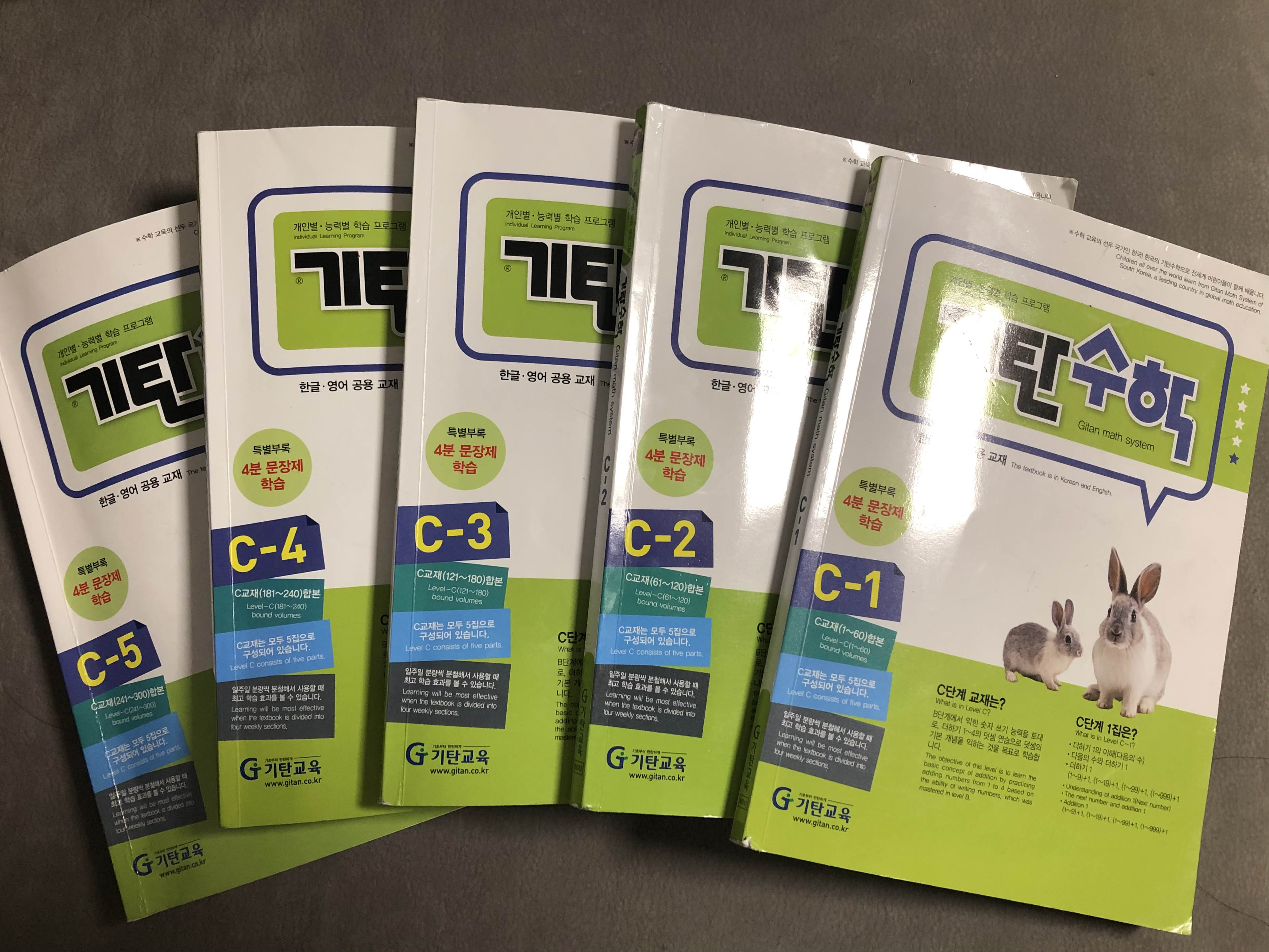 여태까지는 주로 하루에 한세트 15장씩을 풀었는데 기탄수학 C-5로 오니 한 장씩은 뚝딱뚝딱 풀어내는데 한번에 다섯장 이상 풀기를 싫어한다. 그동안 하루에 한세트씩 풀던게 이상했던게 나도 어릴때 구몬을 세장이상 풀기 싫어했으니.. 하루 다섯장 풀기 정도로 페이스를 유지하기로 했다. D단계로 넘어가면 또 어떻게 풀지 모르겠다.