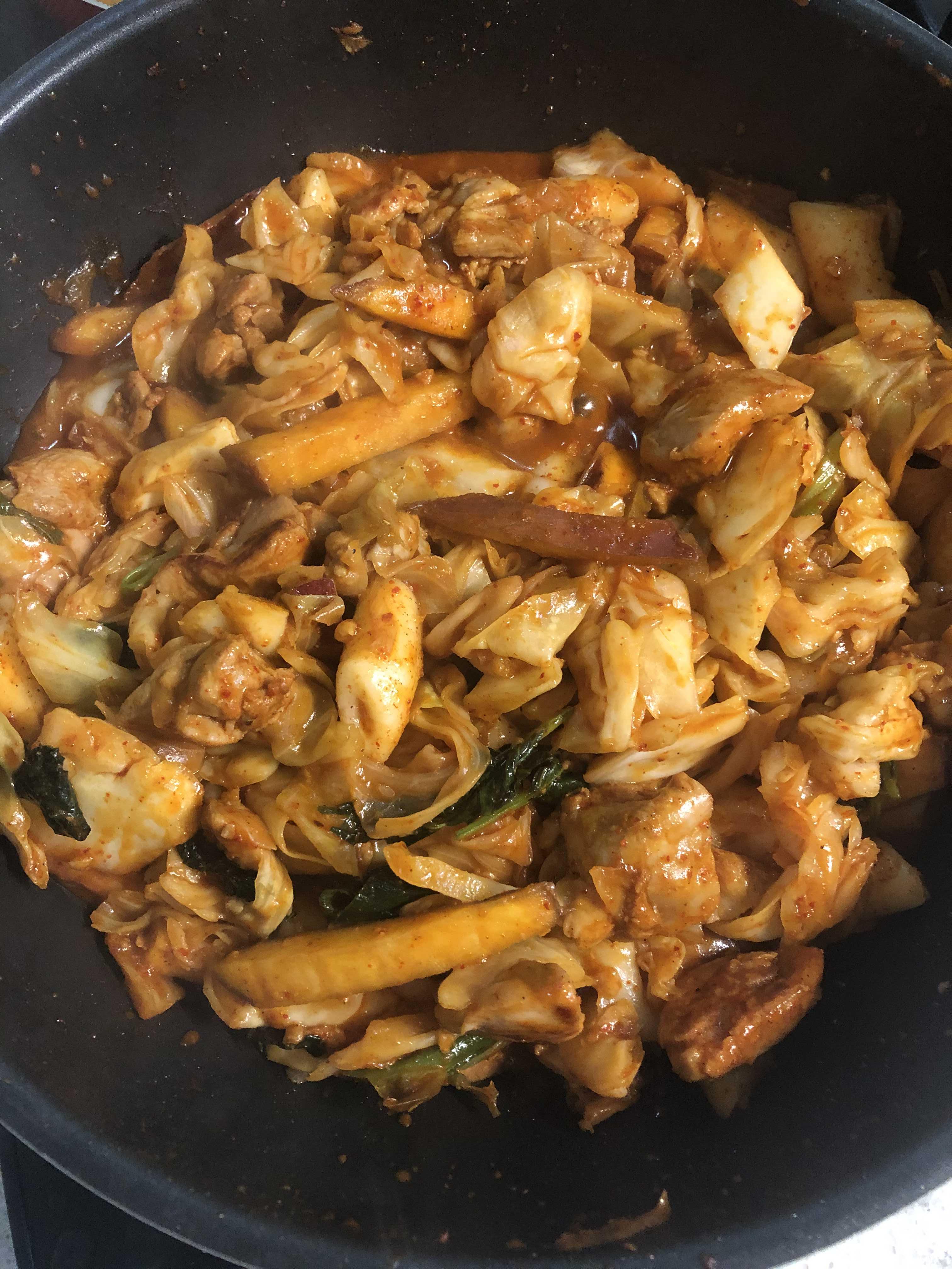 통나무집 닭갈비가 복스럽게 익어간다. 반만 넣었으니까 이게 2인분 인데 양이 진짜 많아서 놀랐다. 시중에서 파는 밀키트는 가격 대비 양이 아쉬울 때가 있는데 택배로 시켜먹는 집들은 양으로 아쉬운 적은 없는 것 같다. 오히려 식당에 가서 사 먹을 때보다 더 많이 주는 듯.. 그리고 다른 것 보다 닭고기도 야채도 싱싱하게 왔다는 점에 가장 큰 점수를 주고 싶다.