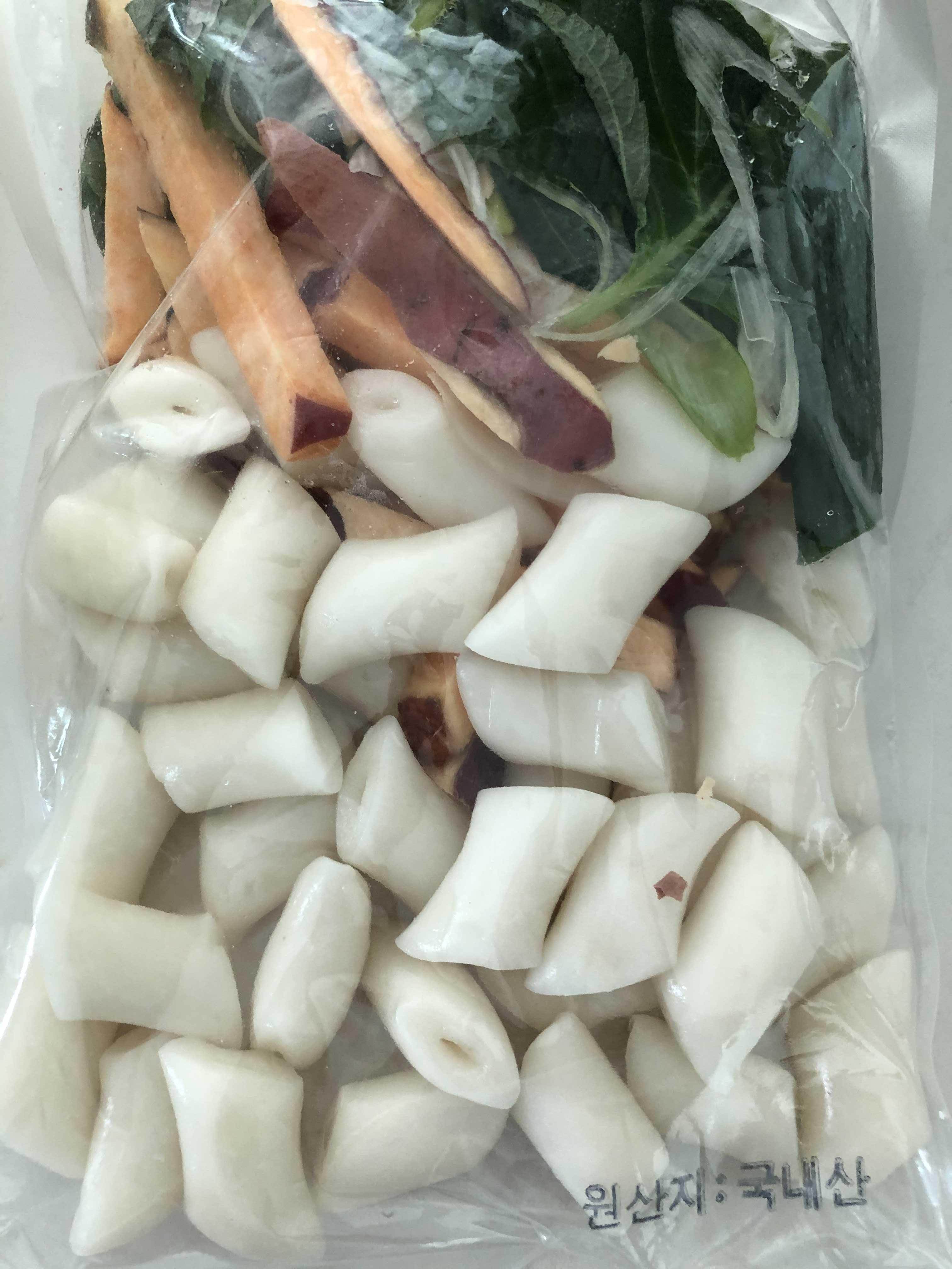 그 다음에 야채 사리와 떡사리, 양념을 넣고 익혀준다. 양념은 취향에 따라 조금씩 넣어보라는 설명이 있었는데 나는 두 봉지 중 한 봉지의 반을 넣었다. 좀 더 맛있게 먹으려면 더 넣어도 좋을 것 같다. 본인은 안 짜게 먹는 편이니 참고하시기 바란다.