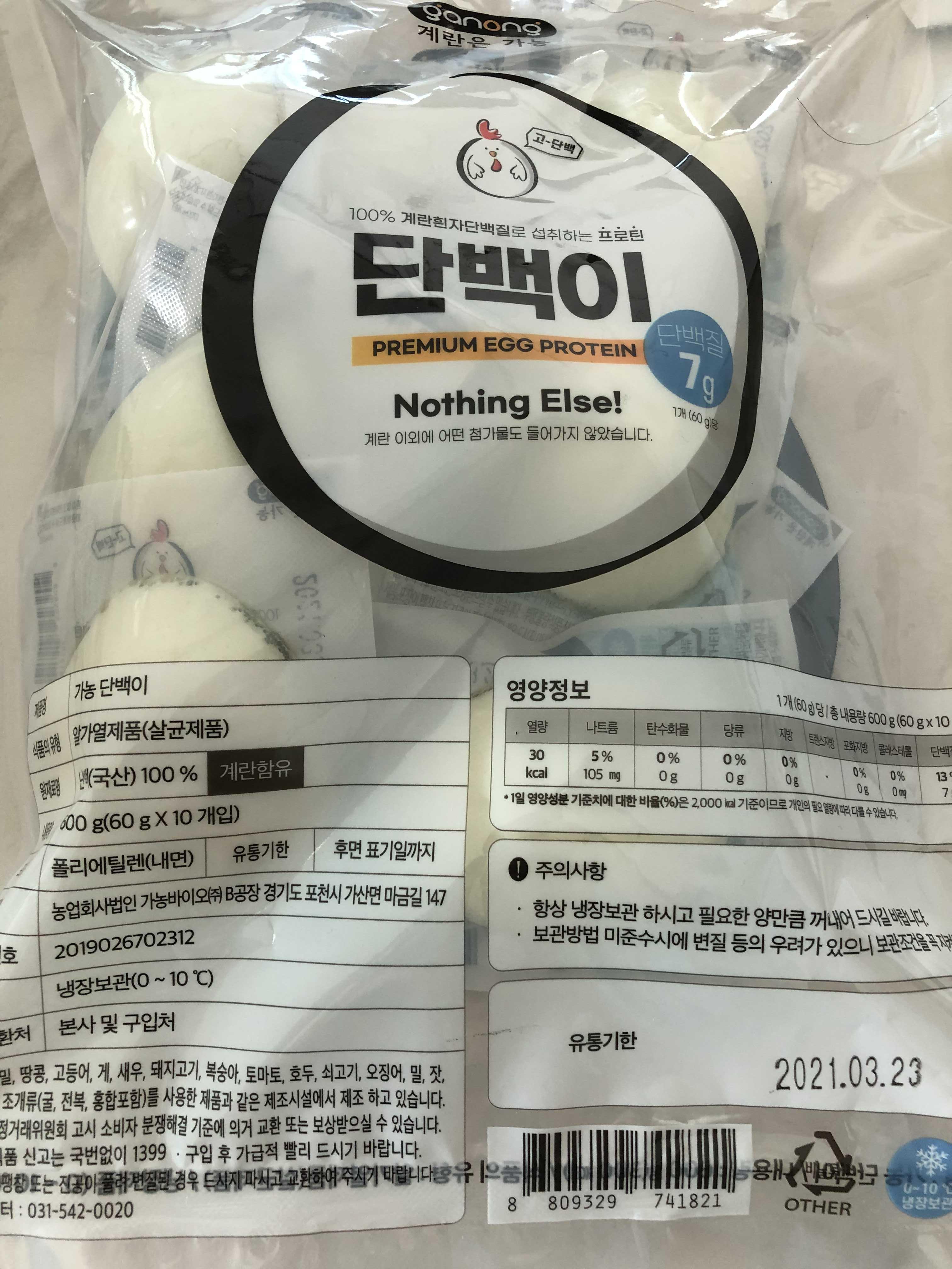 가농 단백이의 또 하나의 장점은 후면에 유통기한이 1달로 표시되어 있다는 것이다. 유통기한이 꽤 길어서 집에서 어쩌다가 끼니를 챙기는 바쁜 직장인들이나 급할 때 먹이는 아이들 간식으로도 괜찮을 것 같다. 다이어트만 아니면 라면에 영양을 위해 넣어먹어도 괜찮을 것 같다는 생각도 들었다. 가격은 생물 계란과 비교할 수는 없겠지만 정말 뭐라도 해먹기 귀찮을 때 간단하게 먹을 수 있다는 점에서 높은 점수를 주고싶다. 냉장고 비상용 쟁임템으로 적극 추천한다.
