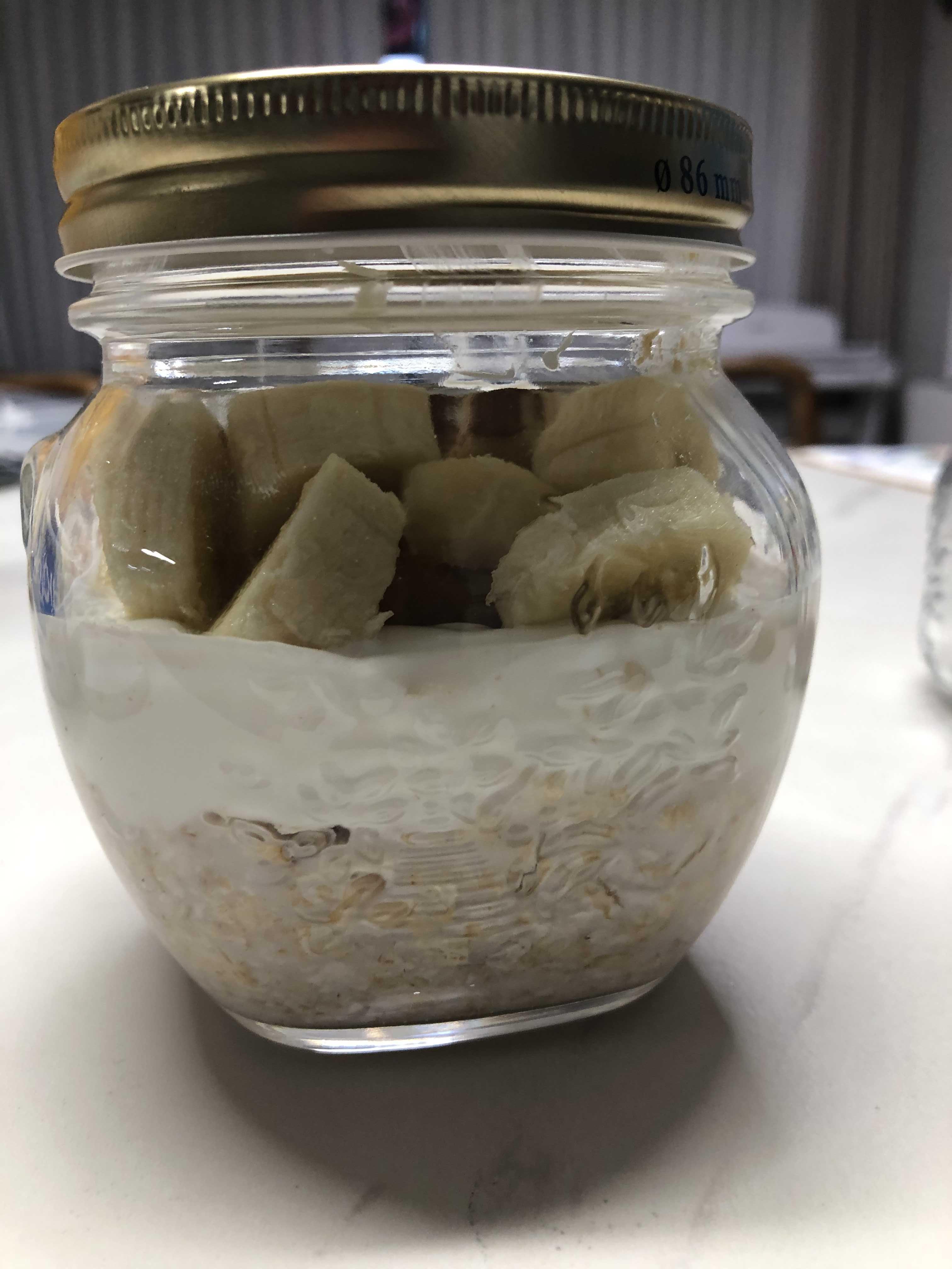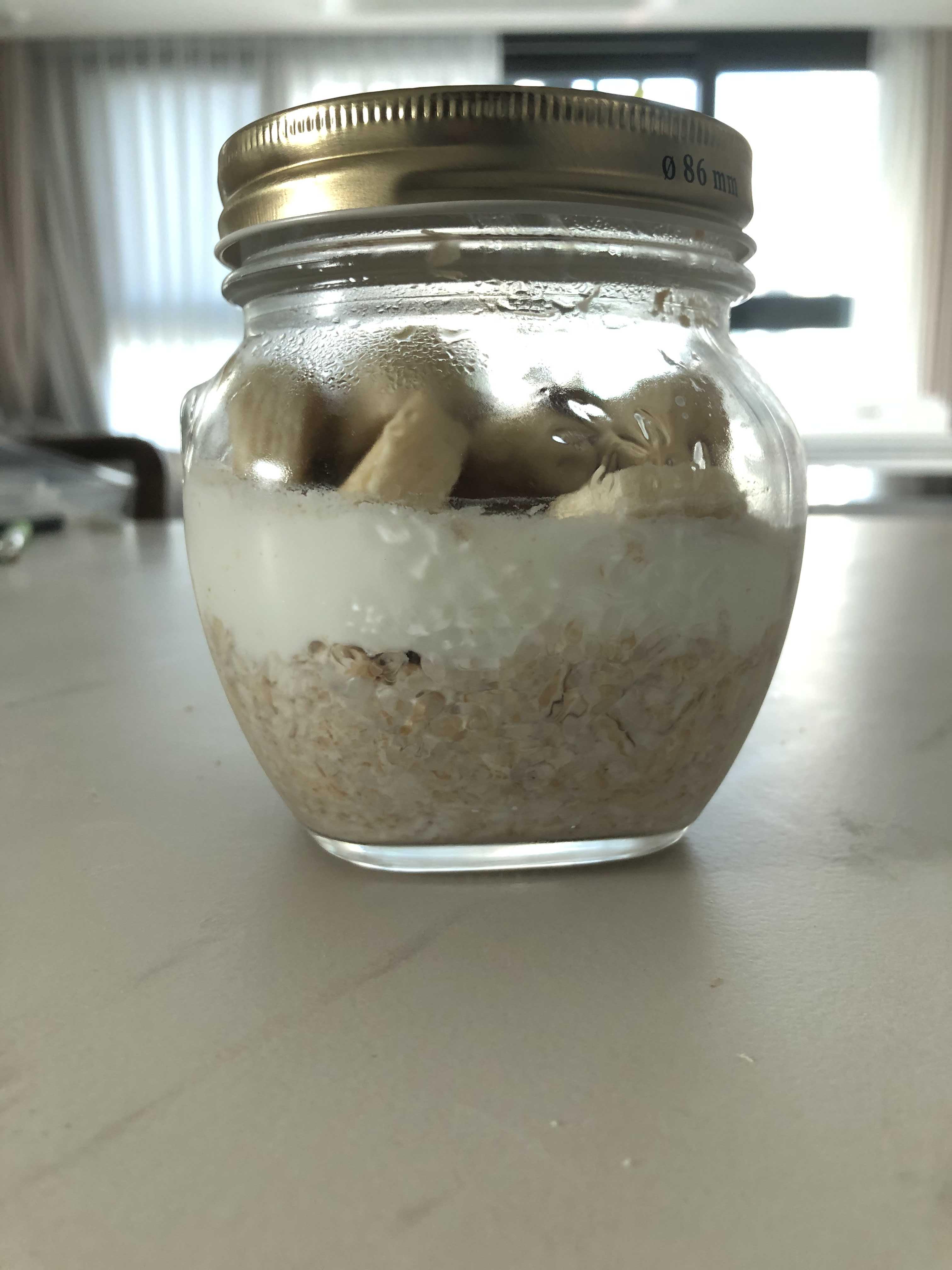 측면에서 보니 벌써 오트밀이 수분을 쫙쫙 빨아들이고 있는 모습이 보인다. 8시간은 지나야 날오트밀 맛이 덜나서 맛있고 본인이 날 오트밀 맛도 괜찮다면 3-4시간은 지나고 먹는 것을 추천한다.
