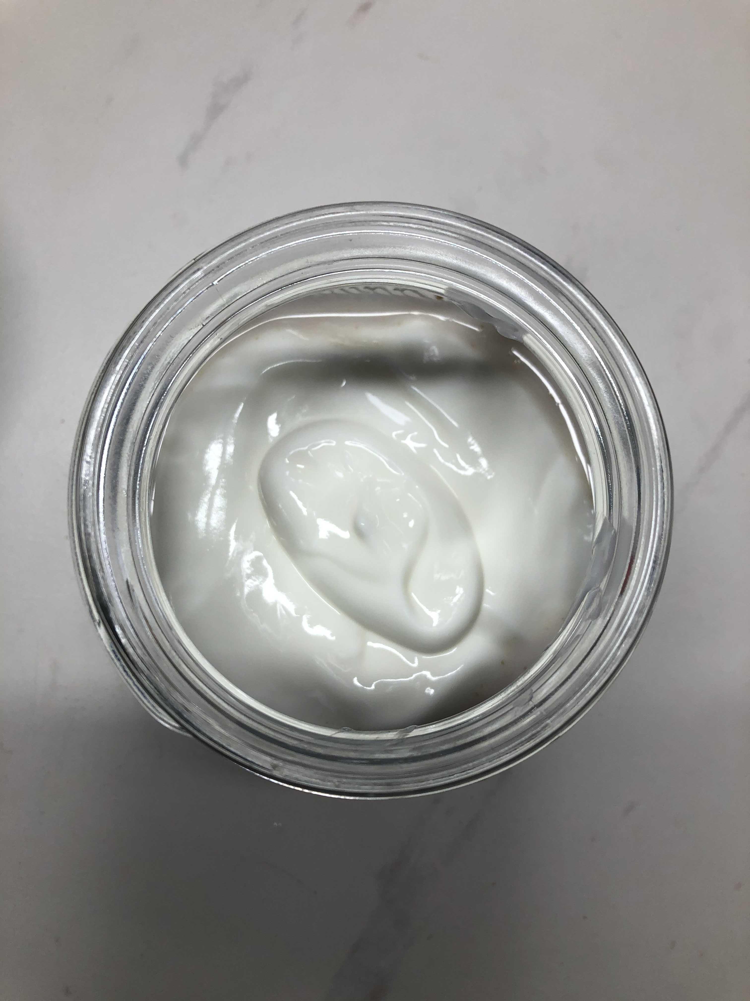 묽은 아몬드 브리즈를 먼저 부어주고 그 위에 플레인 요구르트를 올려주었다.