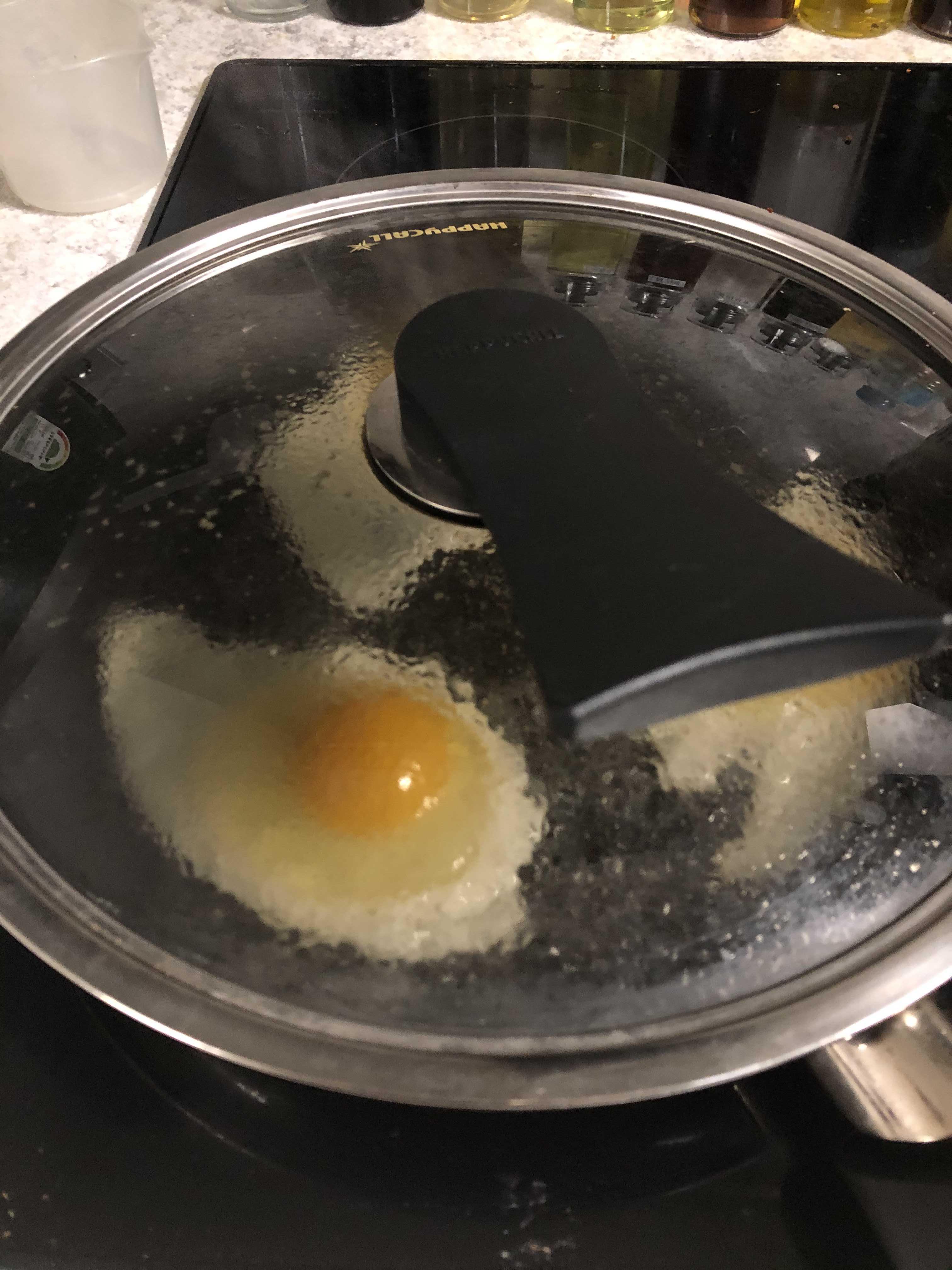 나는 계란후라이 없이 버터와 간장만 살짝 넣어 먹는 것도 좋아하지만 아가들은 단백질과 영양소가 부족하면 안되니 계란후라이를 하나씩 올려줄 것이다. 반숙 계란후라이가 더 좋지만 아이들이 아직 어려 계란을 되도록 거의 다 익혀준다. 물을 약간 넣고 뚜껑을 덮고 약불로 줄이면 계란을 그냥 기름에 튀긴 것 보다 촉촉하고 덜 기름진 계란후라이가 되어 아이들에게 주기 좋다.
